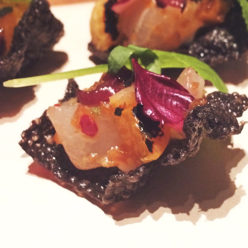 Tout était réussi en terme de saveurs et exécuté avec brio au niveau de la présentation. J’imagine que les versions plats vs bouchées ne peuvent être que spectaculaires! Je retiens particulièrement l’huître, qui réinvente notre vision du Rockefeller, et le sandwich de poulet et son artichaut frit, deux copains fort sympathiques que j’inviterais bien à table à nouveau.